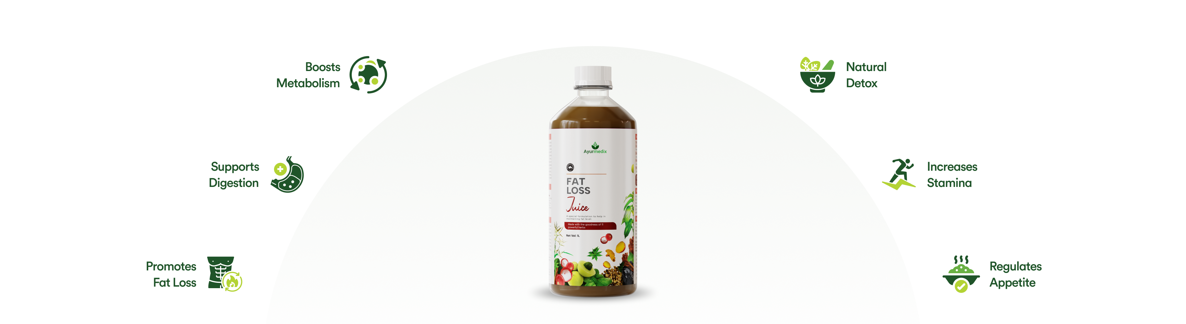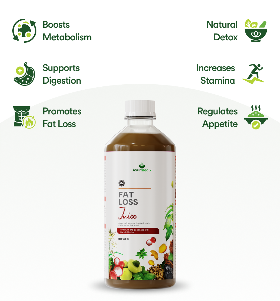 Ayurmedix Fat Loss Juice is a carefully crafted herbal blend designed to aid digestion, boost metabolism, and support your weight loss journey while promoting natural detoxification.